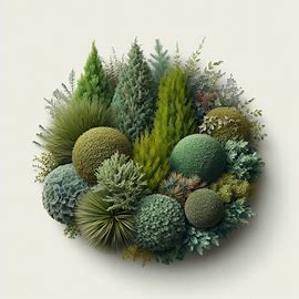 - Diverse assortment of evergreen shrubs